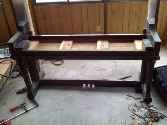 It must be said that I couldn’t have completed this project without the help of Kevin Garcia, whom I referenced in one of my very first Hair Tonic & Horse Feathers posts, as well as Mark Rosellini. Even more thanks goes to my wife for allowing this project to go on INDOORS for so long. Hopefully a nice piece of unique antique furniture to hide our ugly black & shiny modern devices will make up for the trouble .